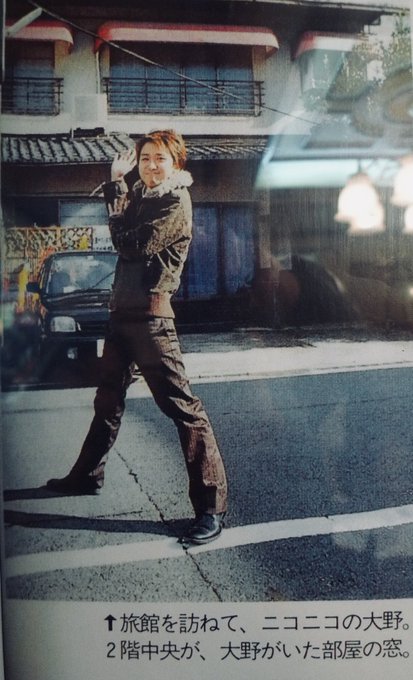 ※京都の旅館前で嬉しそうにポーズを取る大野智