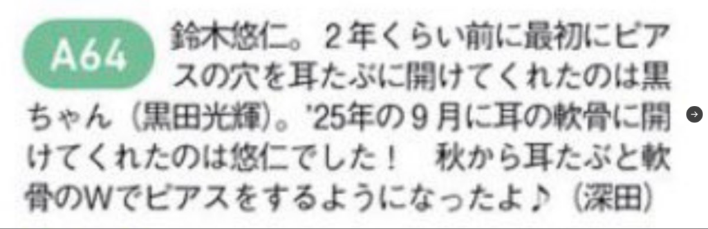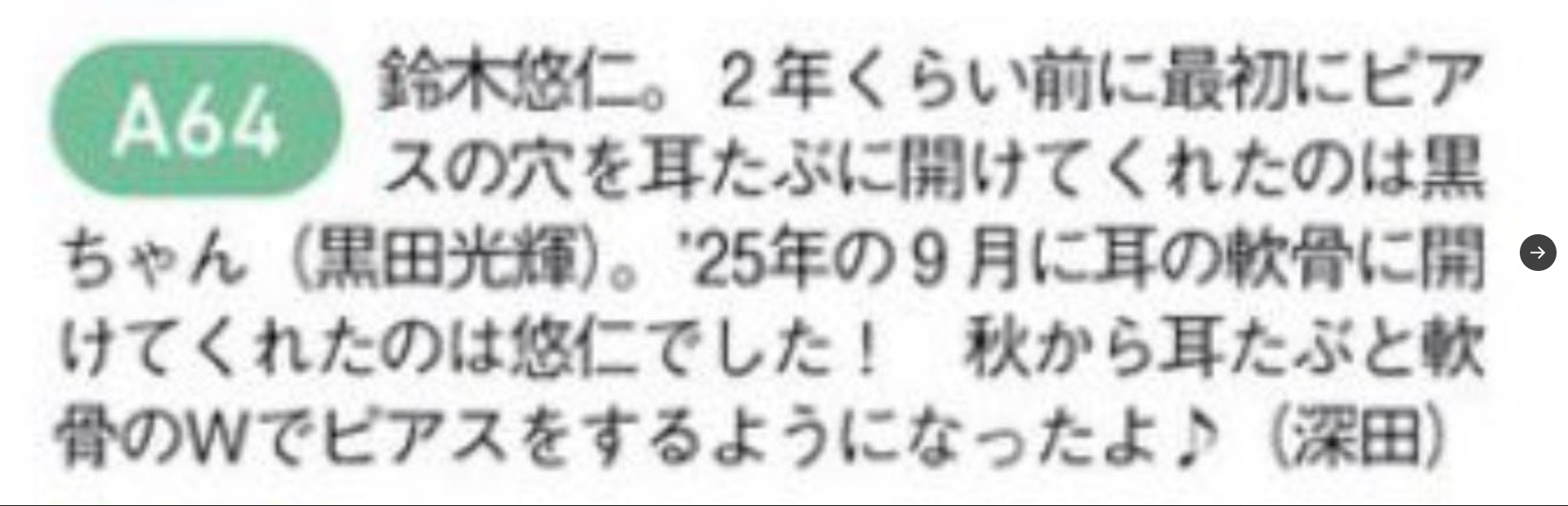 普通の倫理観で考えれば、2025年9月に深田竜生くんが軟骨ピアスを開け、田口愛佳さんの軟骨ピアスが12月頃から確認できて、おそろいに見えて、左右なら、匂わせだよねと思います。